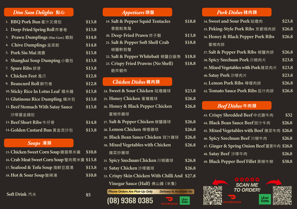 Beef lovers will relish dishes such as the Braised Beef with Ginger and Shallot and Pan Fried Fillet Steak with Black Pepper, each prepared with finesse and vibrant seasonings. The vegetable and tofu selections are equally impressive, offering health-conscious diners tasty options like the Grilled Stuffed Bean Curd and seasonal vegetables sautéed in garlic or oyster sauce, ensuring a delightful balance on every plate.